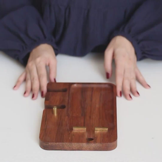 Ananda Gift Pro Stand – Wood & Brass Docking Station for Phone & Essentials